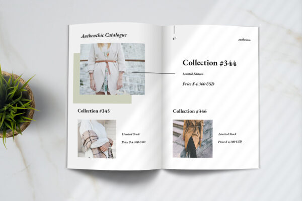 Authentic fashion product and catalog/lookbook clean and minimal design. This template have 25 print page template and optional size A4 Letter size. Perfect for any purposes so you have a variety to choose from to find the perfect fit for your project.