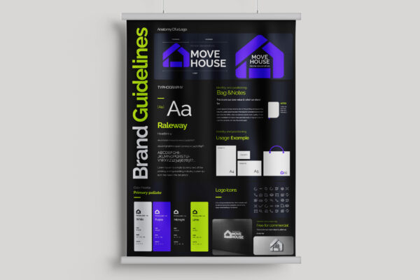 • Flyer-Type Format: The compact, one-page layout makes it easy to share core brand elements like logos, color palettes, and typography. Moreover, it’s perfect for quick reference and distribution.
