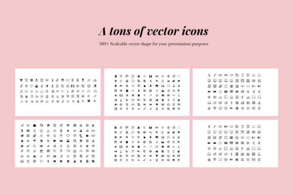 - 500+ Awesome Icons (in slides placed, only need download to see )