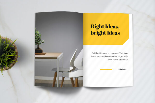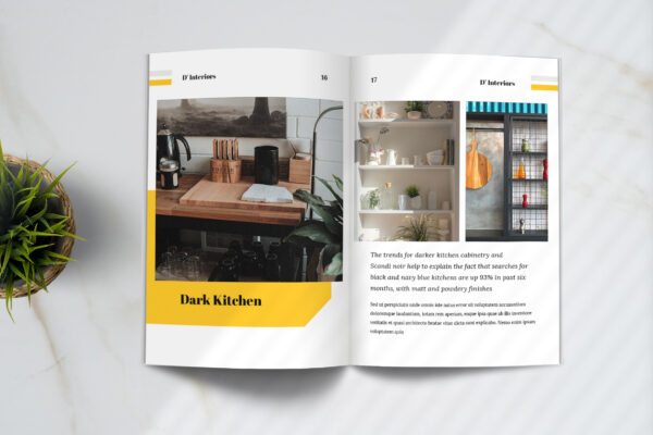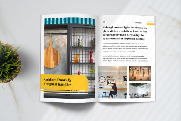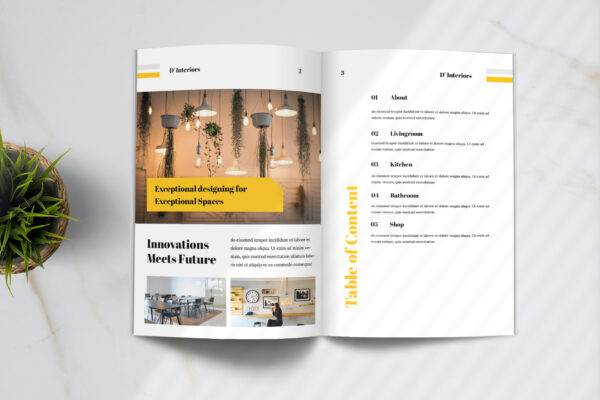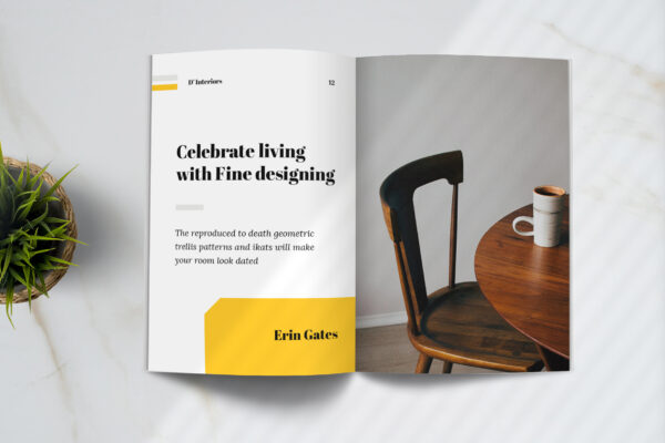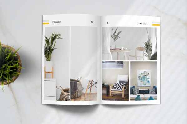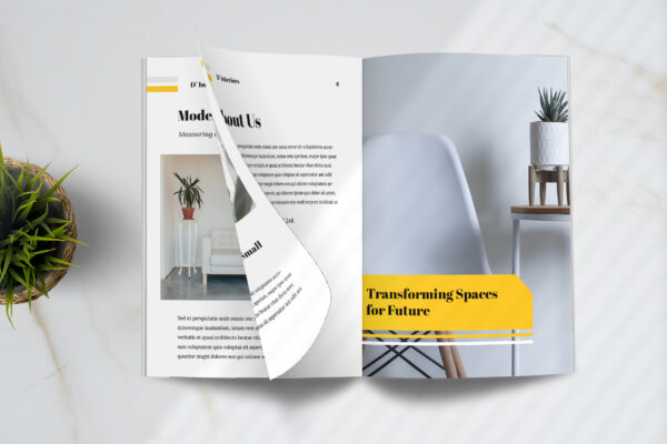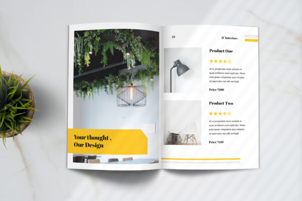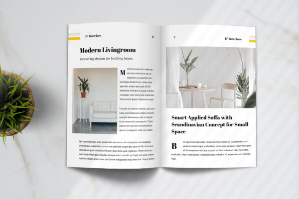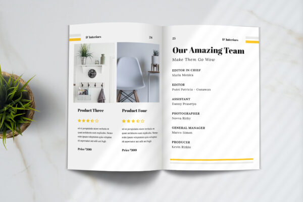 Interior product and catalog magazine clean and minimal design. This template have 25 print page template and optional size A4 Letter size. Perfect for any purposes so you have a variety to choose from to find the perfect fit for your project.