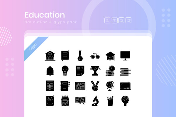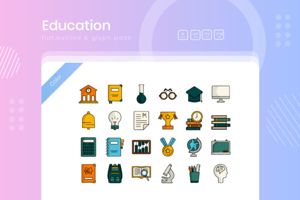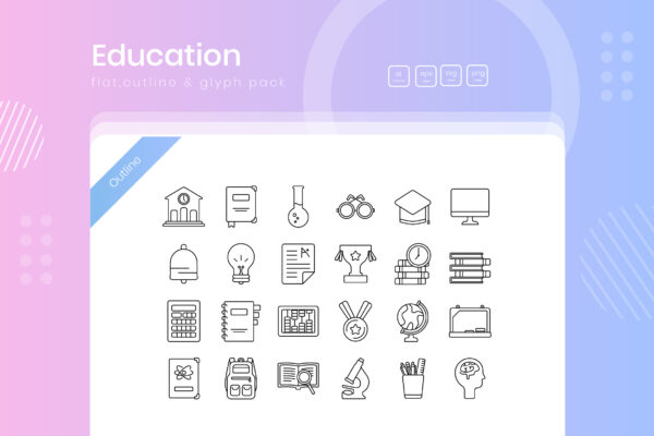 This icons contains 25 Education Flat, Glyph and Outline Icons in Line style that can be used for several projects. Designed with simple clean and fresh look. Vector files easy editable, so you can change its properties and get a whole new look. This mini set Icon is ideal for helping you tell a story about your mobile or web products in a fun and compelling way.