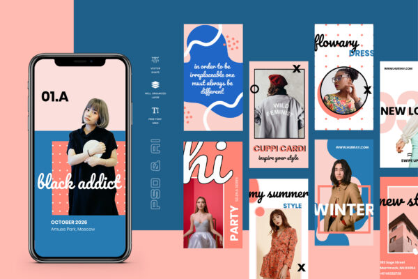 There are many ways to promote your brand to increase more followers. Ready to use Shop Instagram Stories will inspire you and your followers. Change the text, colors, images, strokes and shapes to achieve the best result you want. Mix and match to create your custom stories, and achieve the best impact to your followers.