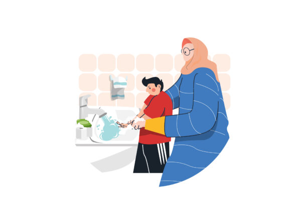 Virus Prevention Washing with Hand Illustration. Modern Isometric vector illustration suitable for building websites, infographics, books, presentation mobile interfaces, ui, social media, banner & especially the header section.