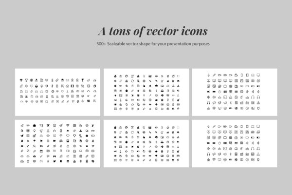 - 500+ Awesome Icons (in slides placed, only need download to see )