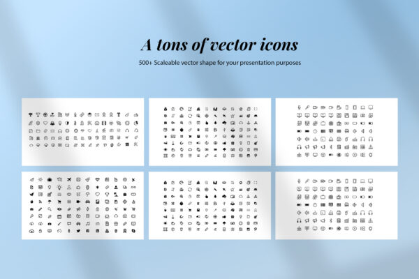 • 500+ Awesome Icons (in slides placed, only need download to see )