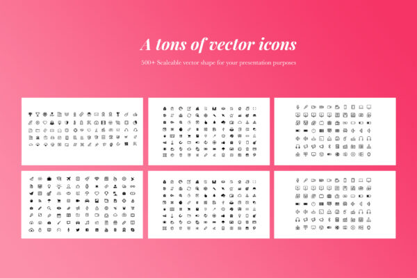 - 500+ Awesome Icons (in slides placed, only need download to see )
