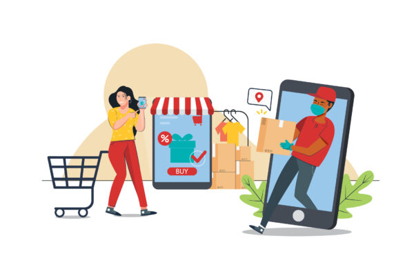 Online Shop Activity Illustration. Modern Isometric vector illustration suitable for building websites, infographics, books, presentation mobile interfaces, ui, social media, banner & especially the header section.