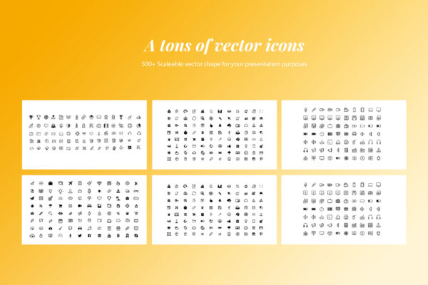 - 500+ Awesome Icons (in slides placed, only need download to see )