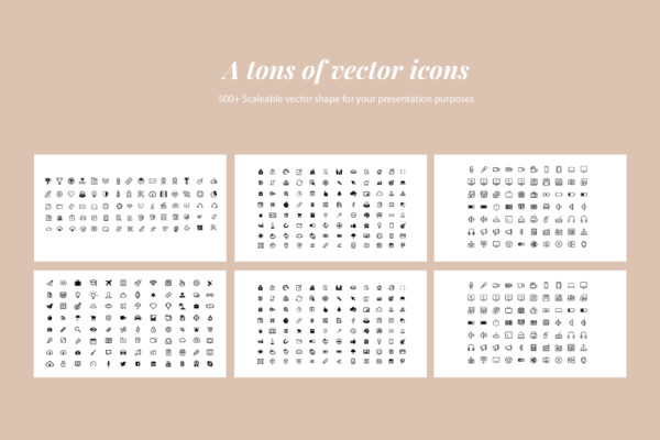 - 500+ Awesome Icons (in slides placed, only need download to see )