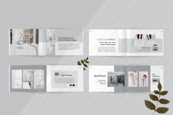 Stille Fashion product and catalog/lookbook clean and minimal design. This template have 15 print page template and optional size A4 Letter size. Perfect for any purposes so you have a variety to choose from to find the perfect fit for your project.