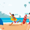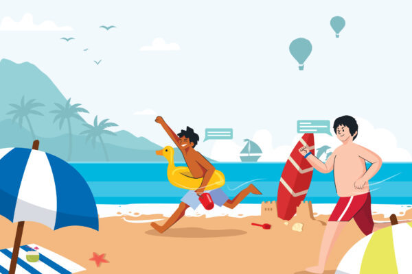 Summer Holiday at Beach Illustration. Modern Isometric vector illustration suitable for building websites, infographics, books, presentation mobile interfaces, ui, social media, banner & especially the header section.