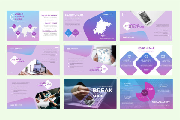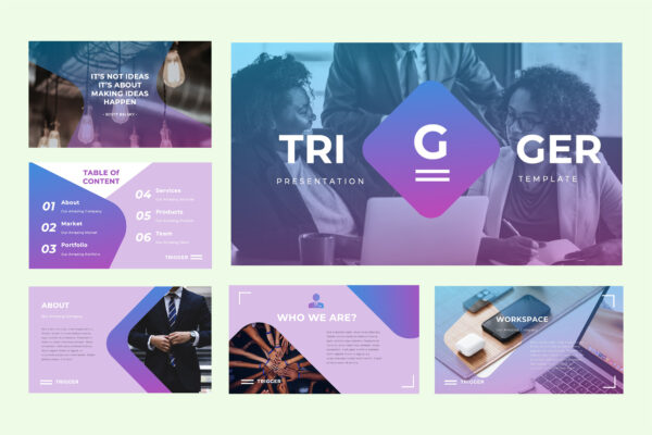 Trigger Business Powerpoint Presentation is a professional presentation to show your portfolio & ideas. Oriental is a Modern and Stylish presentation. This is the right business portfolio presentation for every creator, designer, student, lecturer, businessman who wants to present their awesome project or creative ideas. This presentation contains Modern & Simple content slides. There is no need to use any additional software. You can edit easily this presentation. It’s 100% customizable, All shapes are resizable, with no quality loss, removable and editable.
